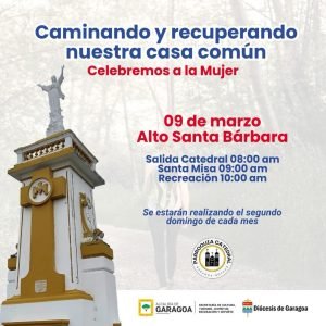El 9 de marzo se celebrará a la mujer con una caminata que saldrá desde la catedral de Garagoa a las 8:00 am, con llegada al Alto de Santa Bárbara; allí, se celebrará la eucaristía para luego cerrar con actividades integrando a la comunidad.