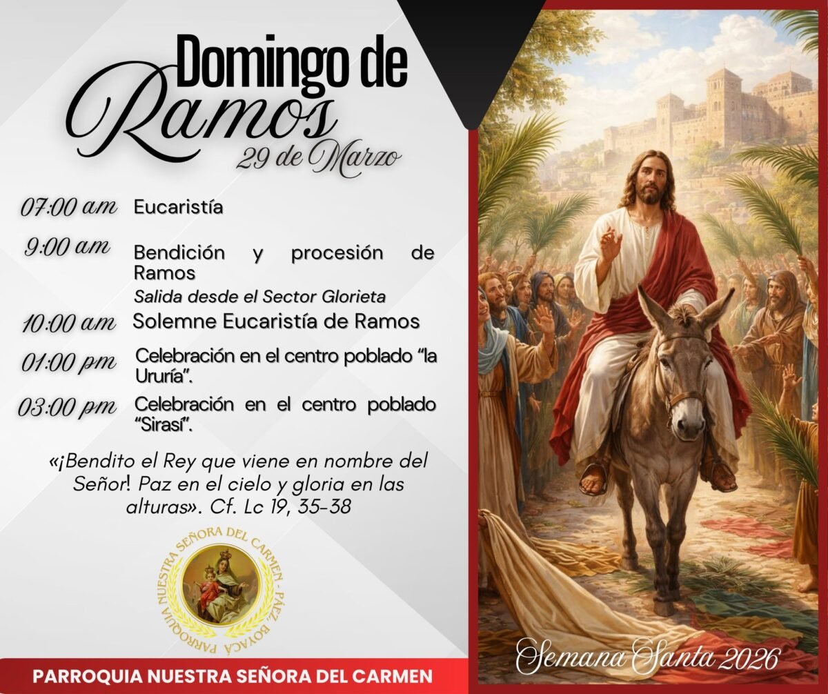 Invitamos a todas las familias, jóvenes, niños, adultos mayores, campesinos y visitantes a vivir con devoción y recogimiento esta Semana Mayor, participando activamente en cada una de las celebraciones programadas.