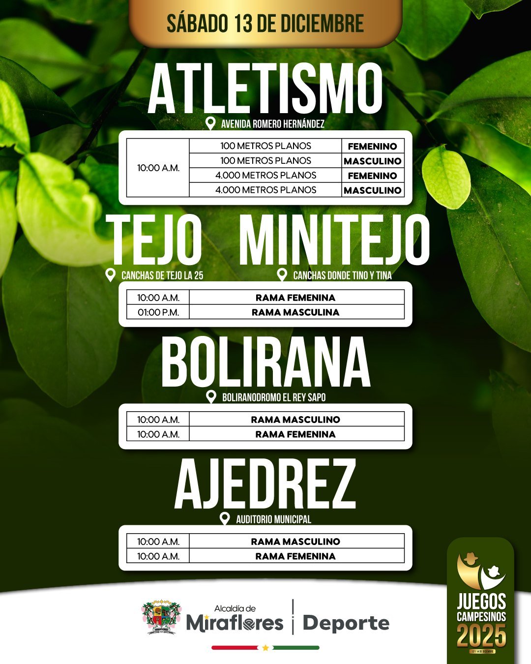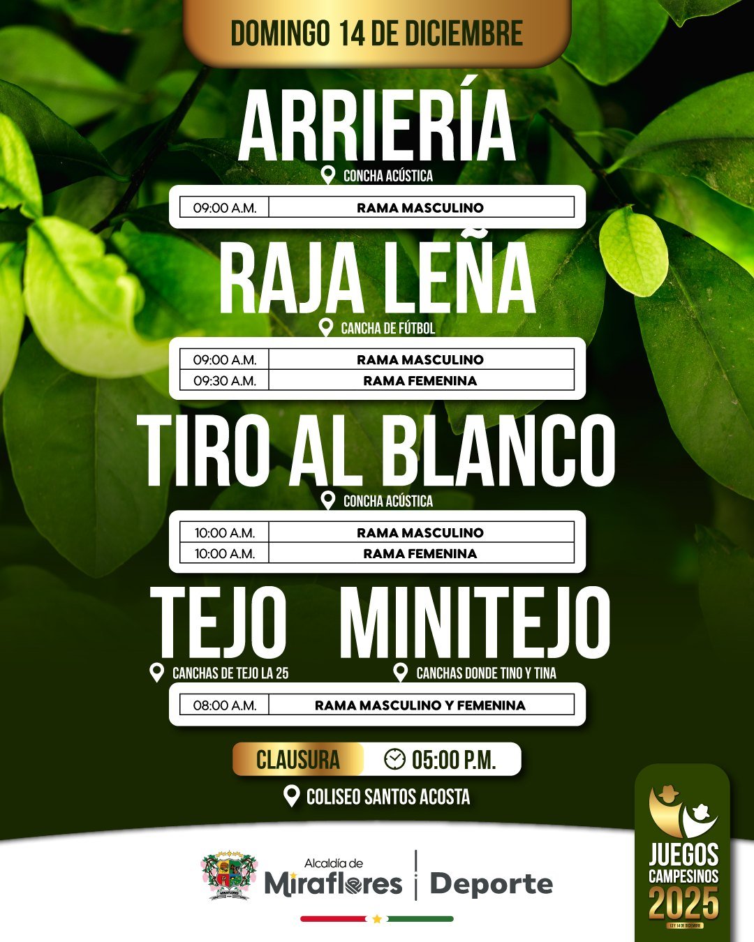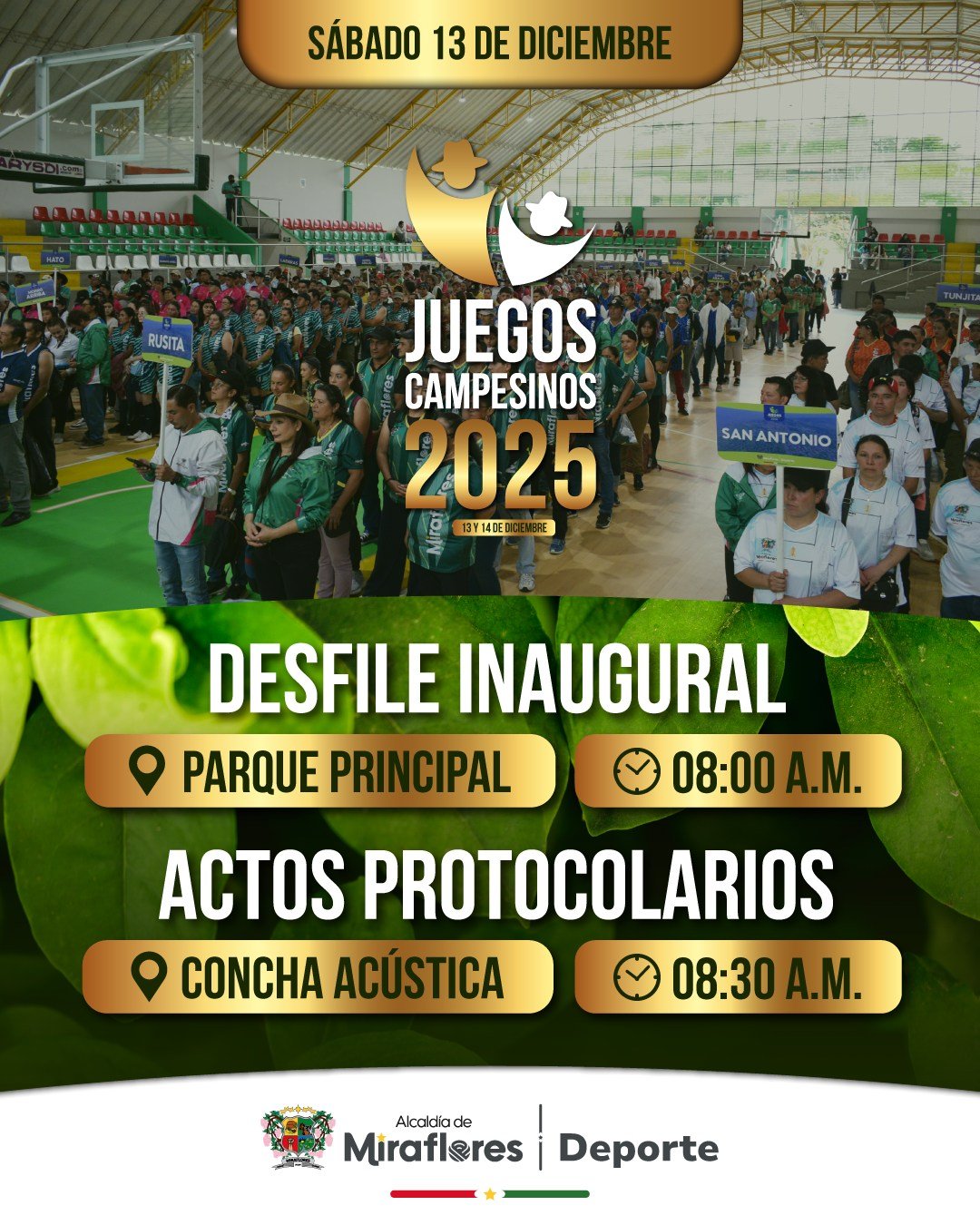 Este 13 y 14 de diciembre, Miraflores vivirá dos días llenos de deporte, tradición y el talento campesino que caracteriza a nuestras veredas y comunidades rurales.