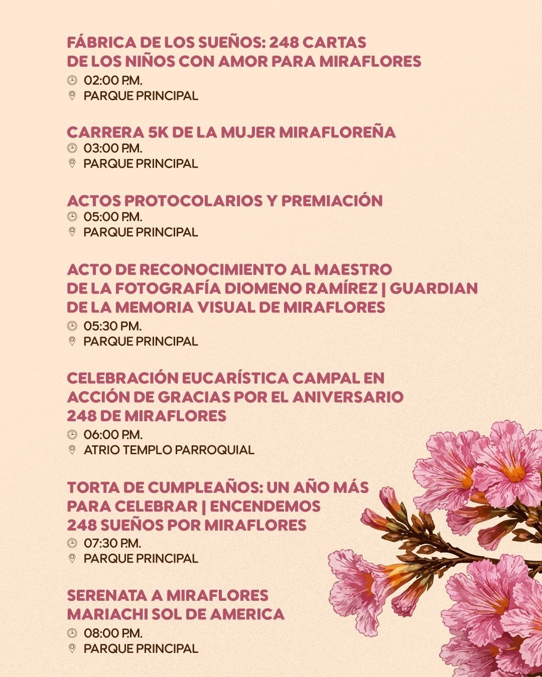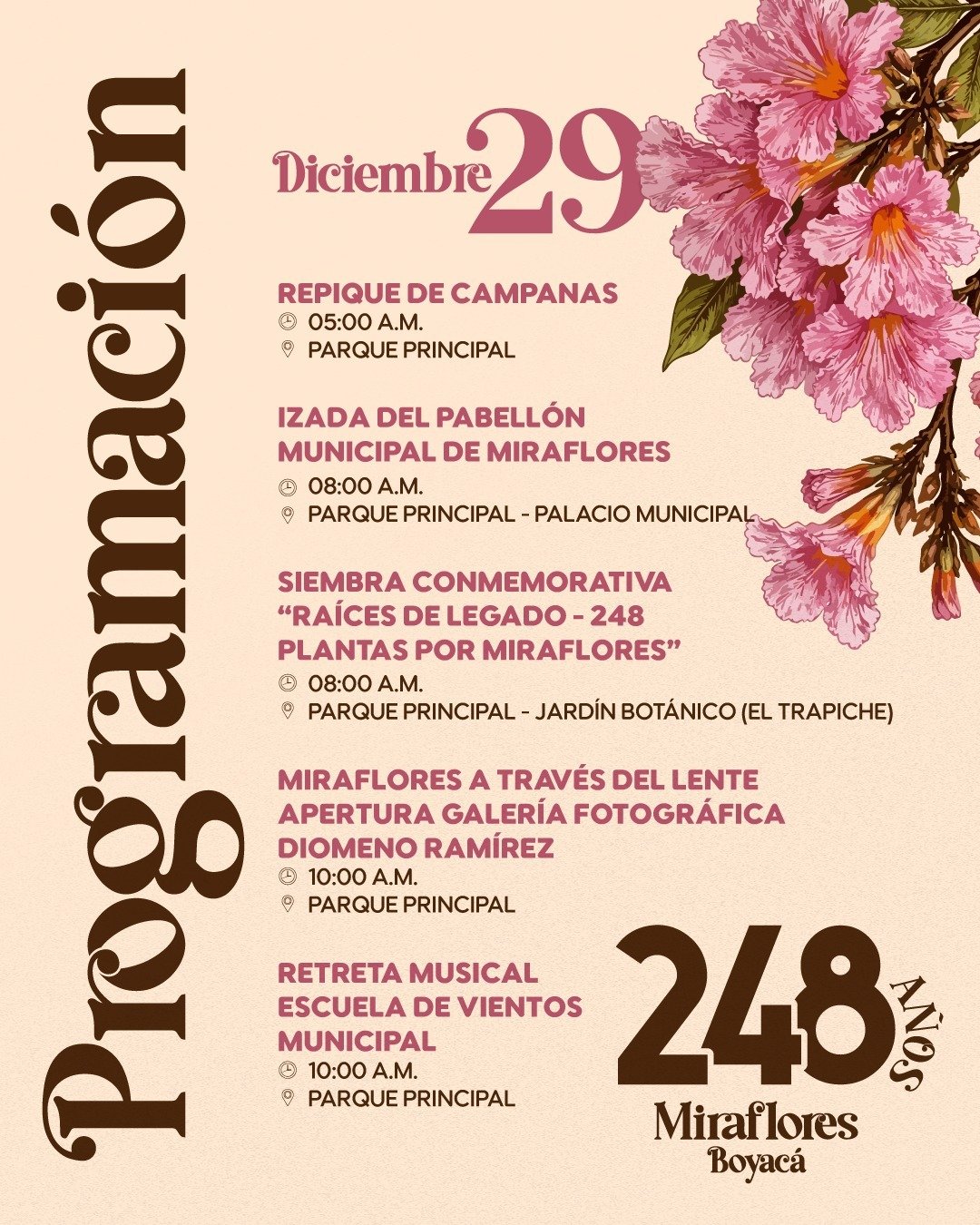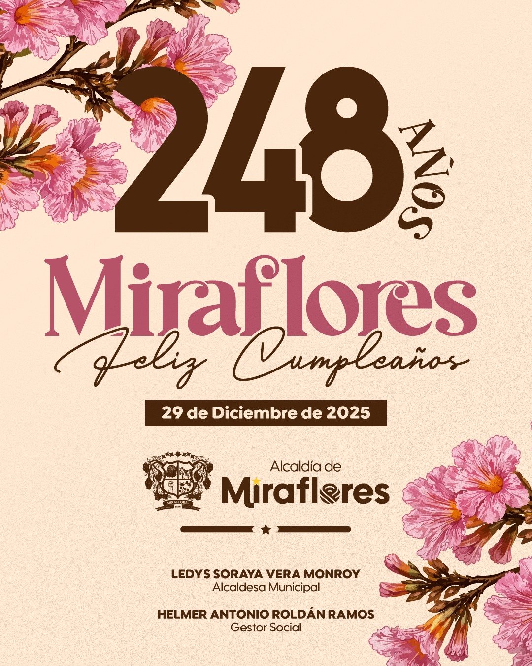 Este 29 de diciembre celebremos con orgullo la grandeza de Miraflores: su gente trabajadora , sus hermosos paisajes , sus tradiciones y cultura️ . Los invitamos a todos losmirafloreños y visitantes a participar y disfrutar de la programación preparada para esta fecha especial, un espacio para compartir