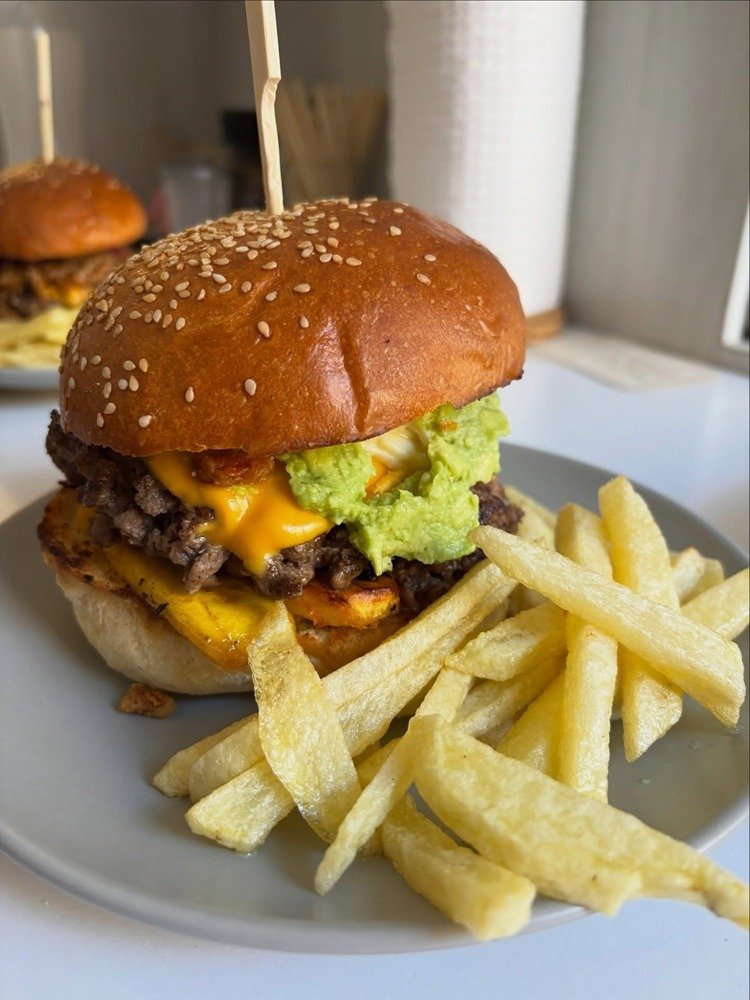 ✅ Una hamburguesa jugosa (¿Pan o tortilla? ¡Tú eliges!).