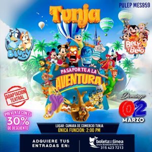 Bluey y sus amigos te esperan en el Centro de Convenciones de la Cámara de Comercio de Tunja este domingo 2 de marzo para un show lleno de risas, música y aventuras que disfrutarán grandes y chicos.