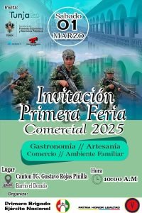 Este evento, organizado por la Primera Brigada del Ejército Nacional con el apoyo de la Cámara de Comercio de Tunja, será una vitrina para el talento local en gastronomía, artesanías y comercio. Tu participación no solo enriquecerá el evento, sino que también contribuirá al éxito de esta iniciativa que busca impulsar el desarrollo económico de nuestra región.