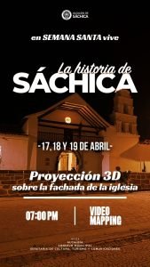 En Semana Santa… ¡vive la historia de Sáchica como nunca antes la habías visto!Te invitamos a disfrutar de un espectáculo de Video mapping que iluminará la fachada de nuestra Iglesia, narrando la increíble historia de Sáchica en luz, color y emoción.