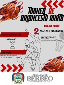 Municipio de Borbur invita a toda la comunidad a participar en el Torneo de Baloncesto Mixto, un espacio para disfrutar del deporte, la sana competencia y la unión entre todos.